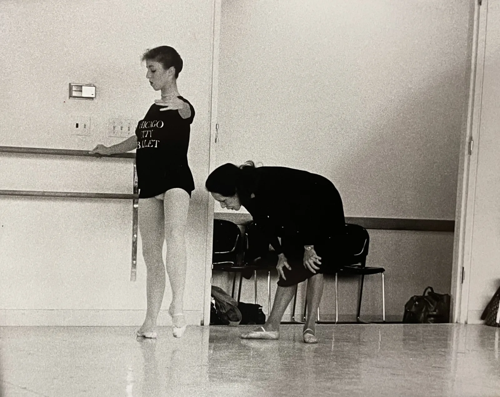 Photograph of Tallchief working with a student, Ann Barzel dance research collection box 64.