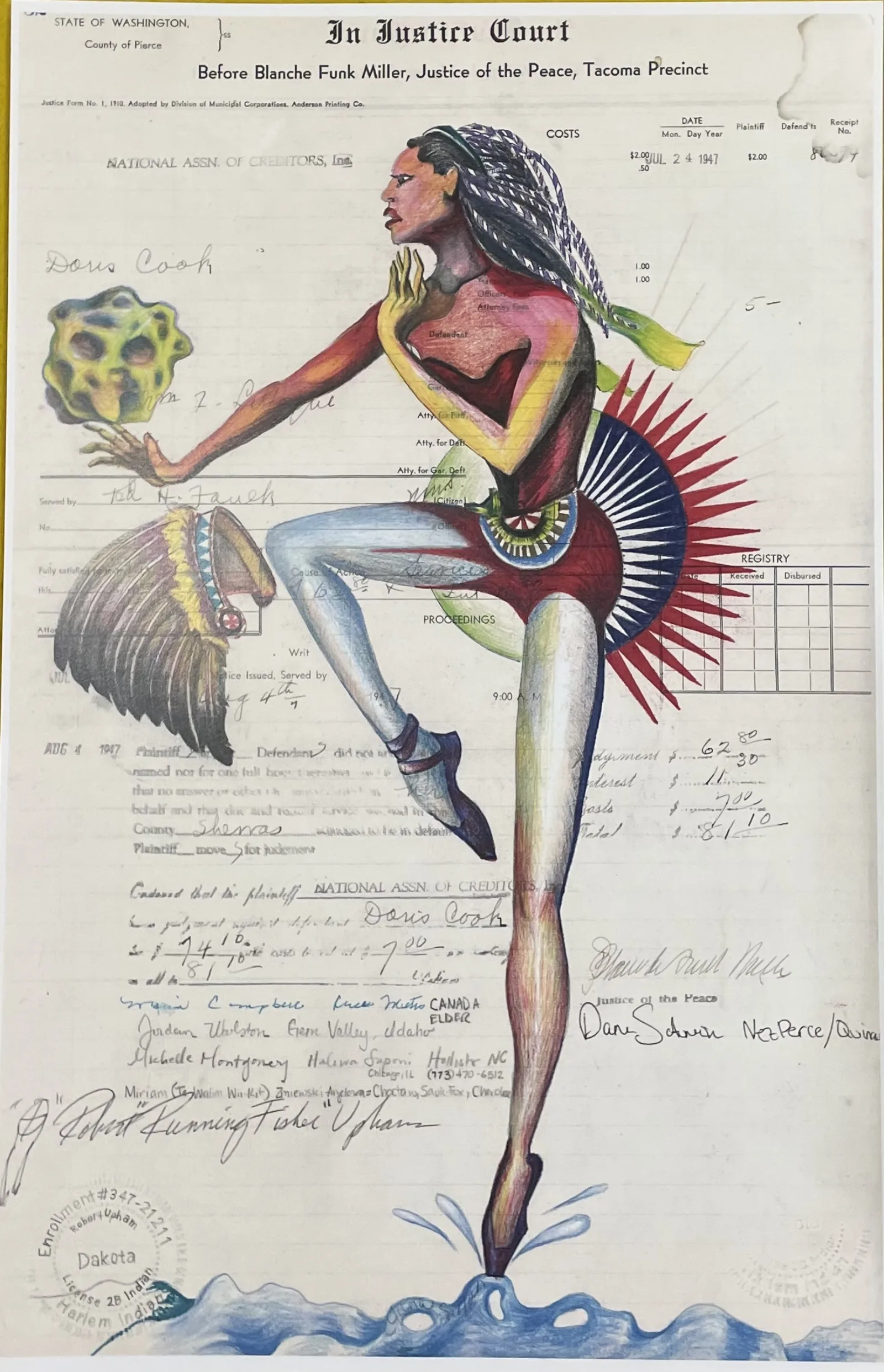 Another one of Tallchief’s most celebrated roles was in Orpheus as the character of Eurydice. In the Newberry’s collection, there is an art reproduction of a ledger drawing depicting Tallchief in this role. This drawing was made by artist Robert “Running Fisher” Upham (enrolled member of Lake Traverse Sioux, community member by blood from Salish, Gros Venture, Assiniboine, and Pend Oreille tribes). In the artist statement for this piece, it is noted that Upham chose to illustrate the prima ballerina “to benefit the aspirations of young American Indian girls.”